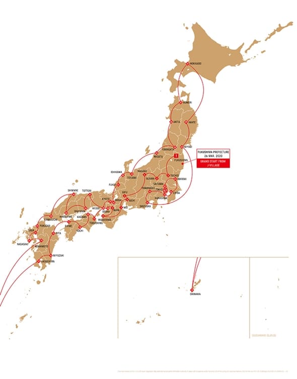 Η διαδρομή έχει σχεδιαστεί έτσι ώστε να εξασφαλίσει τη μεγαλύτερη δυνατή πρόσβαση από το κοινό που θα είναι κατά μήκος των δρόμων και θα δημιουργήσει την εορταστική ατμόσφαιρα. Υπολογίζεται ότι το 98% του πληθυσμού της Ιαπωνίας κατοικεί σε απόσταση μία ώρας οδικώς ή με τρένο από τα σημεία που θα περάσει η Φλόγα.