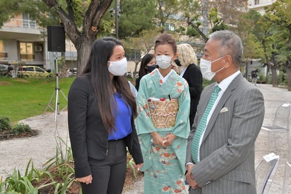 Από την πλευρά του ο Πρέσβης της Ιαπωνίας, Nakayama Yasunori, υπογραμμίζει: «Η γοητεία των ιαπωνικών κήπων έχει αναγνωριστεί διεθνώς και ένας μεγάλος αριθμός κατασκευών έχει λάβει χώρα σε διάφορες περιοχές, συμπεριλαμβανομένης και της Ευρώπης. Υπό τις συνθήκες αυτές, η έναρξη κατασκευής ιαπωνικού κήπου στην πρωτεύουσα της Ελλάδας την Αθήνα, αποτελεί ιδιαίτερη ευχαρίστηση για εμένα ως Πρέσβη της Ιαπωνίας στην Ελλάδα αλλά και ως Ιάπωνα πολίτη. Ευελπιστώ ότι με τη συνδρομή και τη συνεργασία όλων των συντελεστών του έργου, το πάρκο θα ολοκληρωθεί την ερχόμενη άνοιξη ως ένας ιαπωνικός κήπος σε πλήρη αρμονία με την πόλη της Αθήνας».