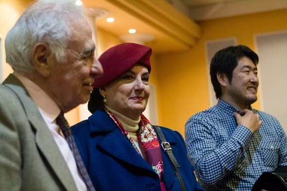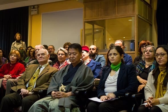 Μετά το τέλος της ομιλίας και το θερμό χειροκρότημα του κοινού που παρακολούθησε με αμείωτο ενδιαφέρον την ανάπτυξη του λίαν ενδιαφέροντος θέματος , ο Κύριος Shimizu συνεχάρη την Κυρία Αναστασιάδου για την διάλεξη της την οποία παρακολούθησε μετά μεγάλης προσοχής καθ’όλην την διάρκεια της με την βοήθεια μεταφραστή.